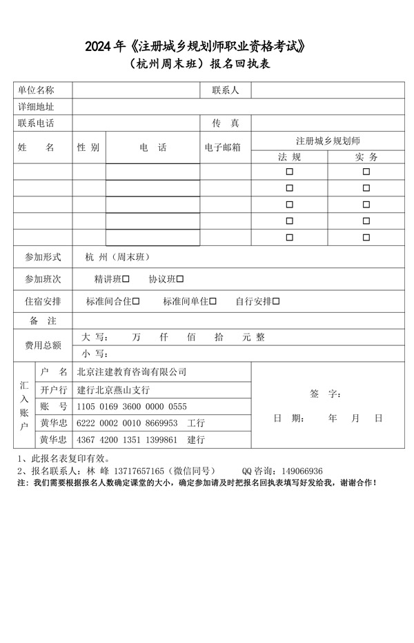 报名回执表下载--2024年注册城乡规划师考前辅导班