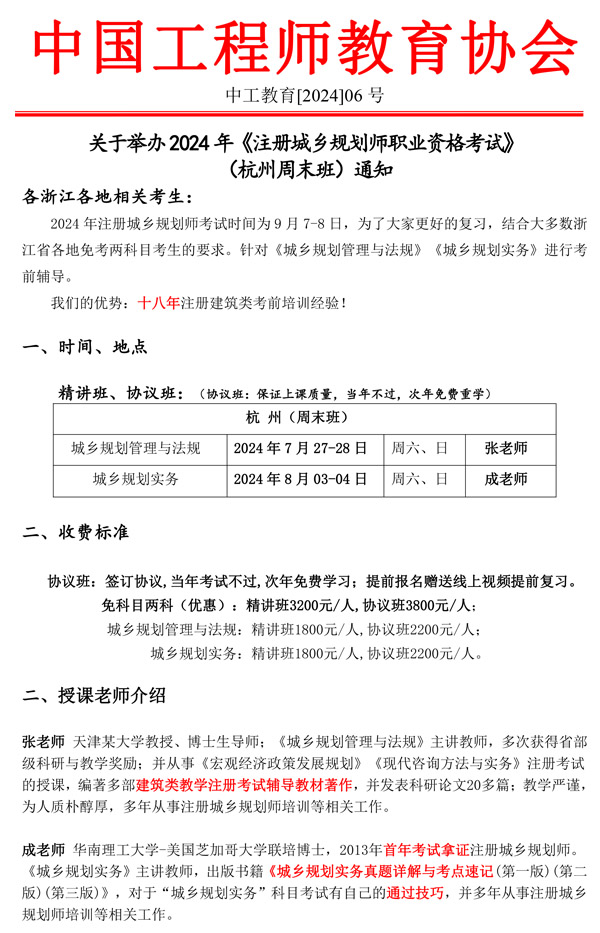 (杭州周末班 )2024年注册城乡规划师考前辅导班